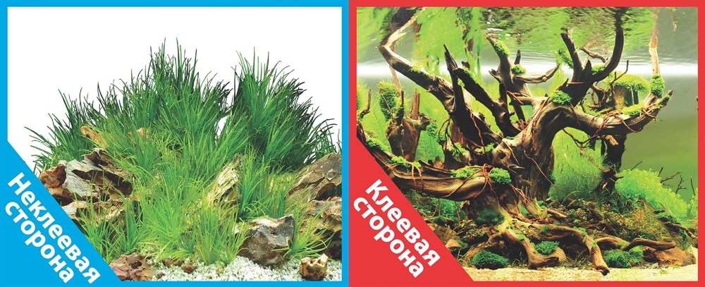 Фон для аквариума. Клеется с наружной стороны. Одна из сторон снабжена клеевым слоем, что позволяет надёжно прикрепить фон к стеклу и обеспечить особую яркость фона.